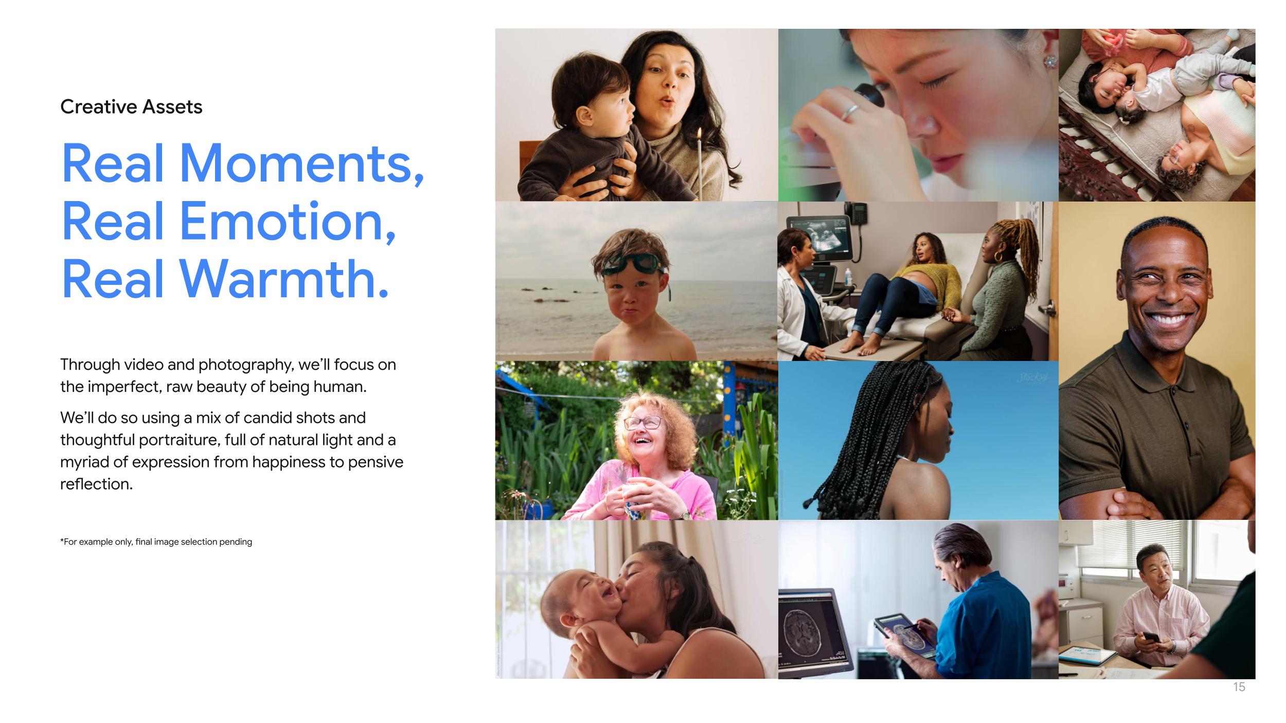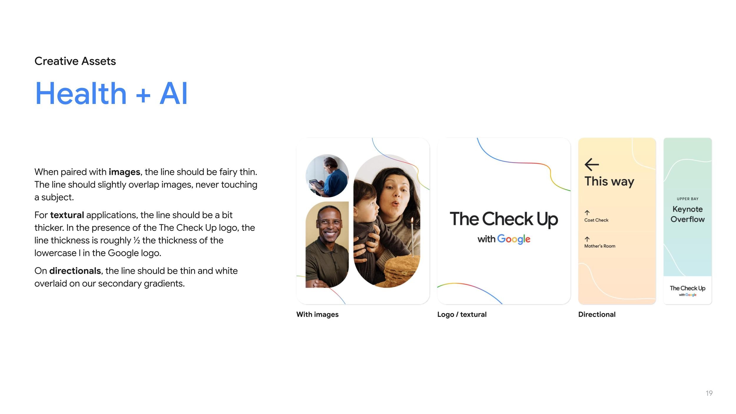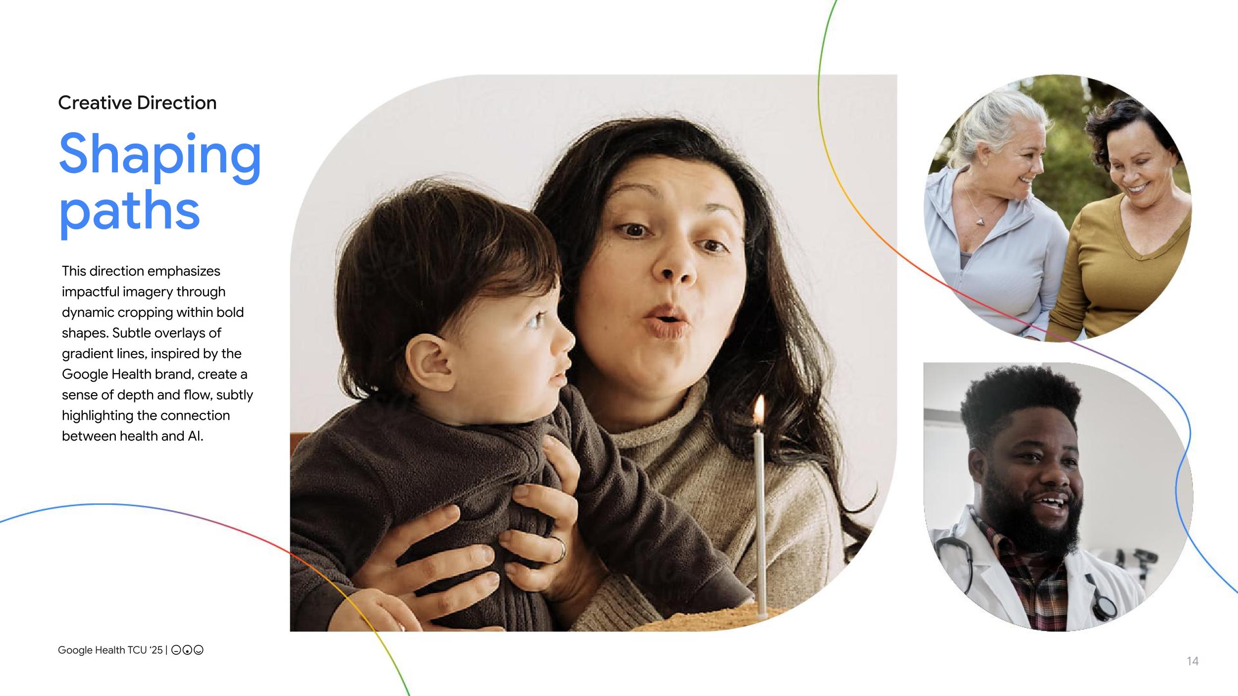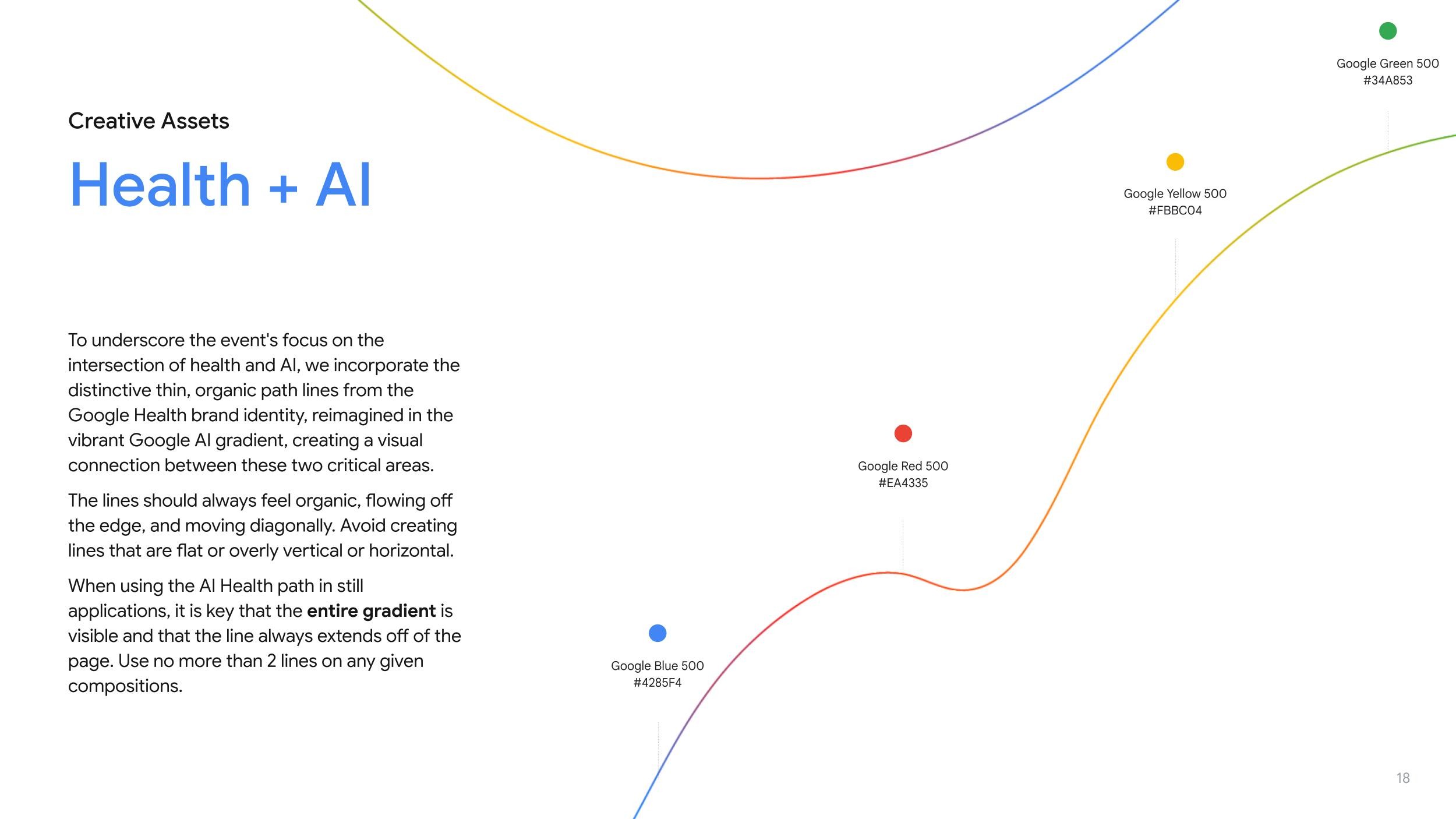 Our hero concept used flowing, organic lines to connect diverse people in healthcare settings. These weren't just decorative—they represented the pathways Google's AI creates to help people navigate their health journeys. The lines felt human and warm, not algorithmic.